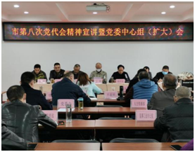 為深刻領(lǐng)會(huì)精神實(shí)質(zhì),確保貫徹落實(shí)到位。10月25日下午,公司黨委召開市第八次黨代會(huì)精神宣講會(huì)暨黨委中心組(擴(kuò)大)會(huì)。公司黨委副書記陳懷志同志主持,公司領(lǐng)導(dǎo)班子成員、各部室負(fù)責(zé)人;各單位黨支部書記及黨務(wù)經(jīng)辦人員;公司機(jī)關(guān)黨支部委員參加。