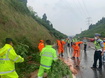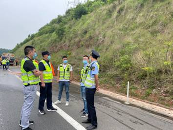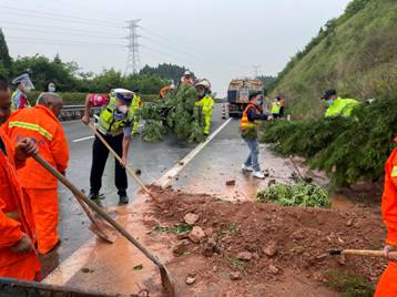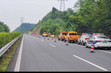 此次演練模擬綿陽繞城高速萬成方向K113+100M處邊坡垮塌、樹木傾倒、落石滾至公路路面,造成交通堵塞。接到報警后,應急救援指揮部立即啟動應急預案,高速交警、交通執(zhí)法、路產維護、高速救援等相關人員迅速集結趕赴事發(fā)地展開搶險救援。同時執(zhí)行公路斷道告知、實施交通管制、開展清障救援、清理塌方泥石、積極搶通道路、恢復交通等應急措施,快速消除了安全隱患,保障了道路暢通。