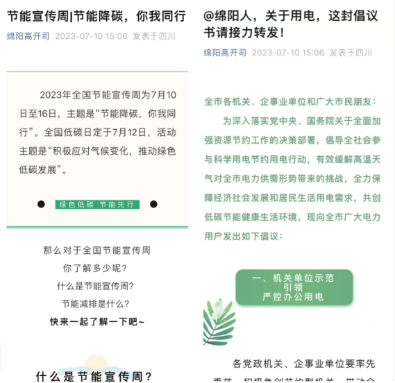 為深入貫徹落實生態(tài)文明建設(shè),做好節(jié)能環(huán)保工作,傳播節(jié)能理念,7月10日以來,高開司積極開展“節(jié)能降碳,你我通行”節(jié)能宣傳活動。充分運用綿陽繞城高速LED屏、公眾微信號、工作群等載體傳播低碳生活理念,大力倡導(dǎo)綠色低碳生產(chǎn)生活方式、接力綿陽節(jié)電倡議,積極營造節(jié)能降碳濃厚氛圍。